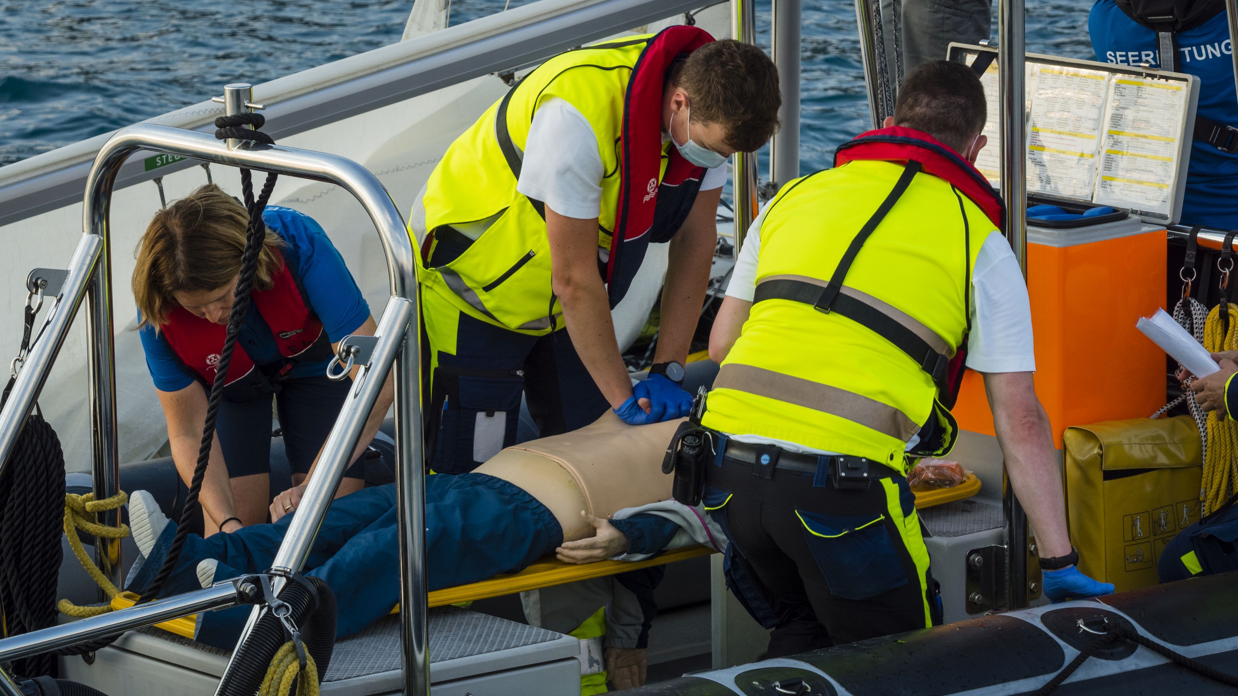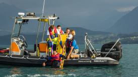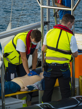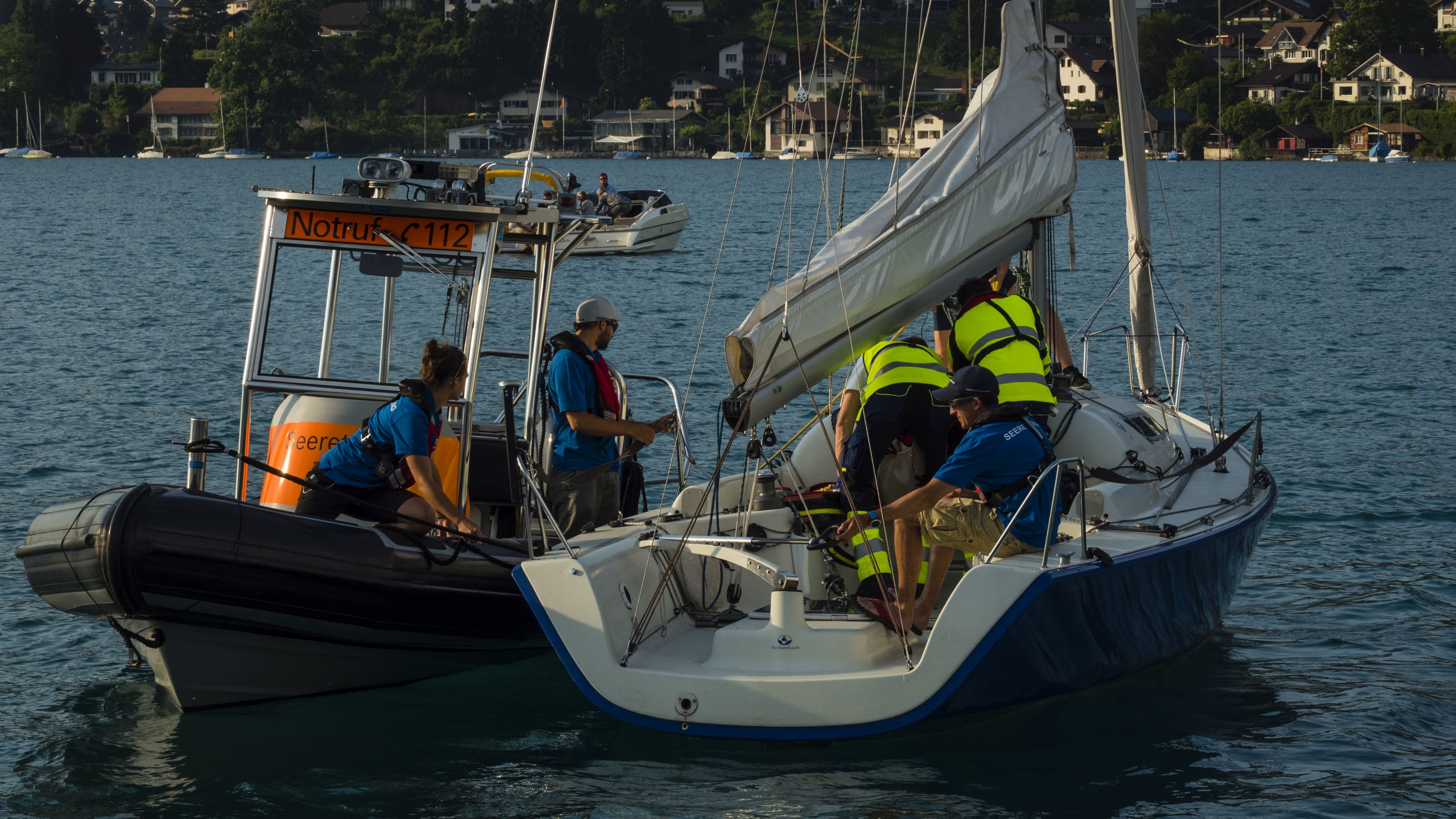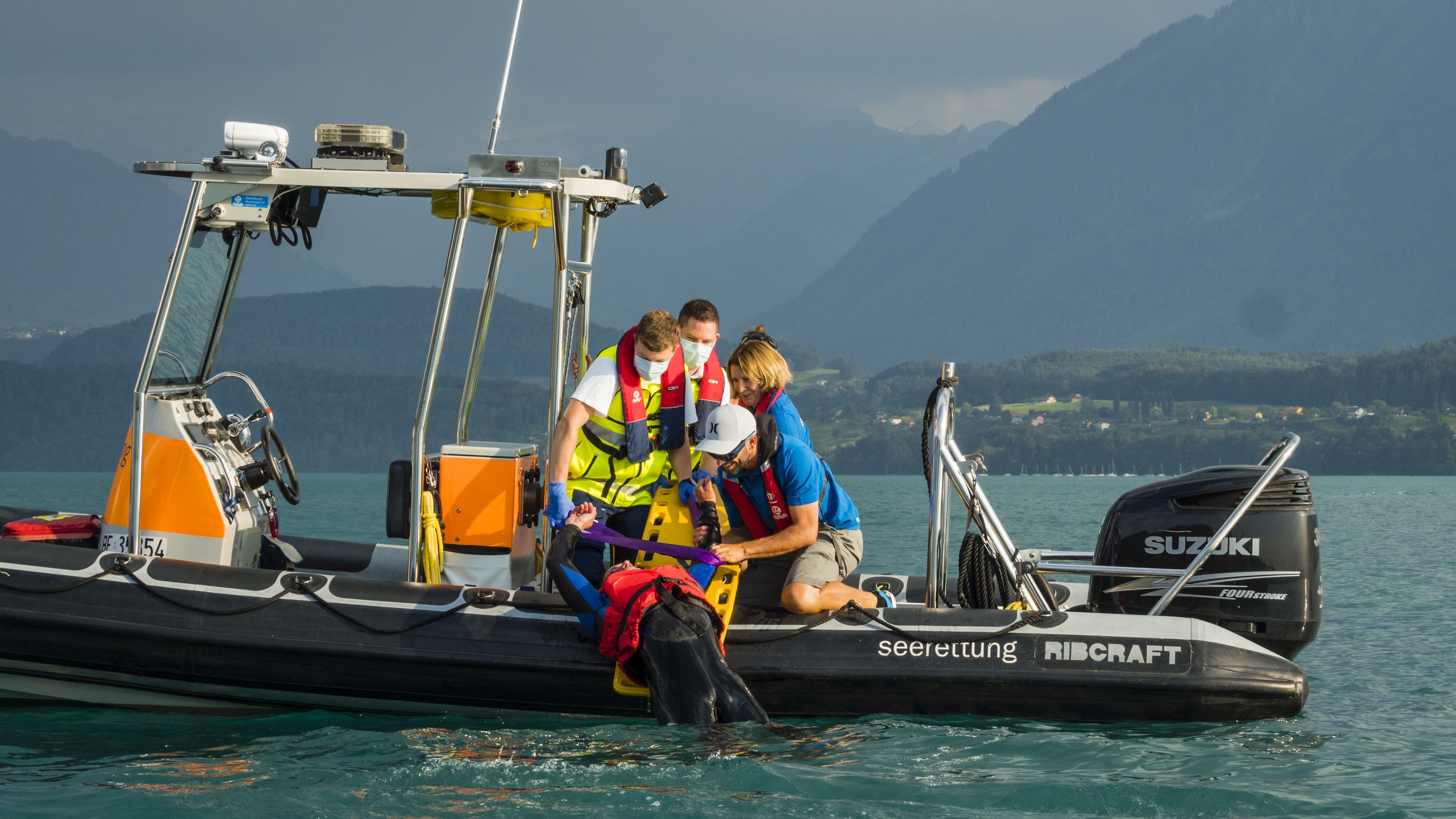 Bilder der gemeinsamen Übung mit dem Rettungsdienst der Spital STS AG im unteren Seebecken.